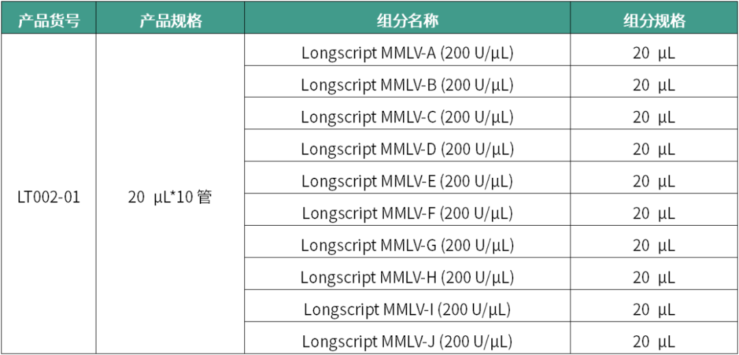 继镁孚泰高特异性MMLV反转录酶(Cat.No.LT001-01)以“高RNA依赖活性+低DNA依赖活性”解决非特异性扩增难题后(点击了解),镁孚泰MMLV反转录酶筛选试剂盒再添创新力作——Longscript MMLV RTase Screening Kit(Cat.No.LT002-01)!这款专为长片段cDNA合成设计的产品,通过极致降低RNase H活性,显著提升模板利用率,攻克长链RNA反转录过程中的模板降解难题,助力基因表达分析、cDNA文库构建、RNA测序等前沿研究迈向更高精度!