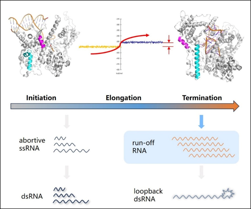 According to literature reports, the production of the byproduct dsRNA mainly originates from two sources (Figure 1): The first is during the transition of T7 RNA polymerase from the initiation conformation to the elongation conformation in the early stages of transcription, the transcription ternary complex is prone to dissociation [1], resulting in the release of a large number of short RNA chains (Abortive RNA) with lengths around 20 nt into the system. These RNA chains act as "primers," complementary pairing with long RNA chains, and extend to produce dsRNA under the action of T7 RNA polymerase's RNA-dependent RNA polymerase activity (RDRP activity) [2,3]. The second source is triggered by the terminal ribonucleotide transfer activity possessed by T7 RNA polymerase. When the transcription reaction reaches the linear template's end, T7 RNA polymerase may randomly add several ribonucleotides without template dependence. These ribonucleotides, forming "random primers," may reverse-fold and complementarily pair with the target mRNA region, extending to produce dsRNA. The dsRNA produced through looping is called loopback dsRNA [3,4]. Therefore, in order to reduce dsRNA byproducts, the focus of T7 RNA polymerase modification lies in stabilizing the early transcription ternary complex or weakening the terminal transfer activity and RNA dependent RNA Polymerase (RDRP) activity of T7 RNA polymerase.