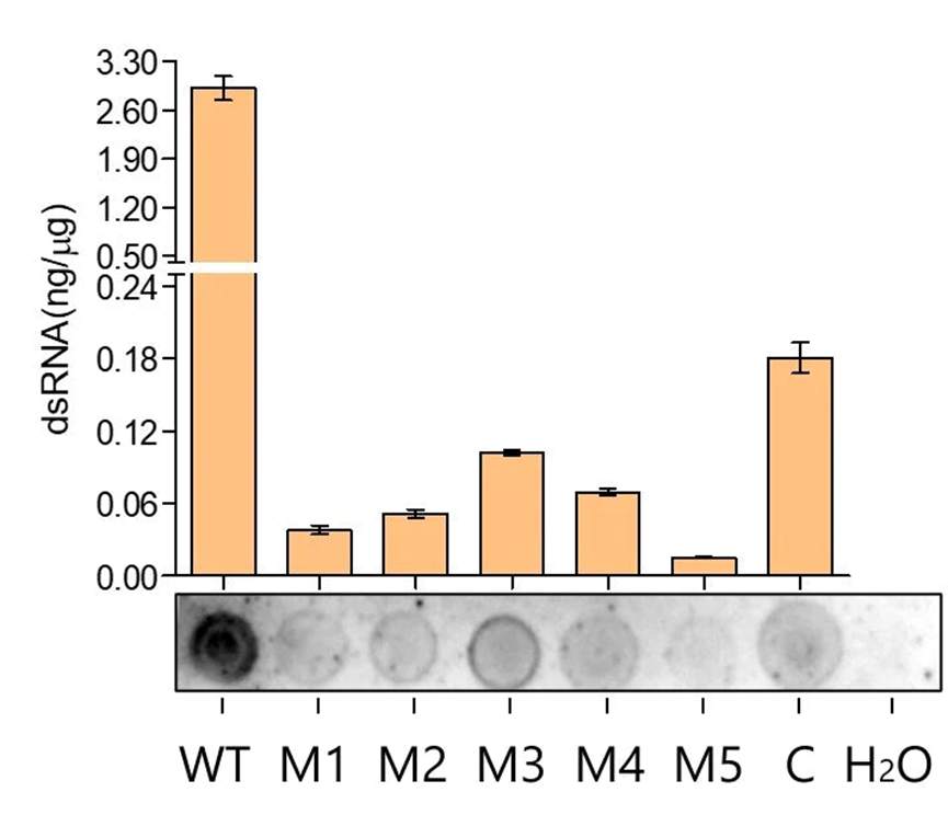Based on the size of the libraries, the team developed ultra-high-throughput screening processes based on fluorescence-activated droplet sorting (FADS) and high-throughput screening processes based on traditional microplate methods (MTPS). Through multiple rounds of experiments, over 10^7 mutants were screened in total, resulting in multiple mutants with significantly reduced dsRNA content. Among them, some mutants showed a decrease in dsRNA caused by Abortive RNA in the reaction, suggesting that the elongation conformation of these polymerase mutants is more stable. Some mutants showed a decrease in loopback dsRNA content in the reaction, indicating a weakening of terminal transfer activity or RDRP activity in these mutants.
