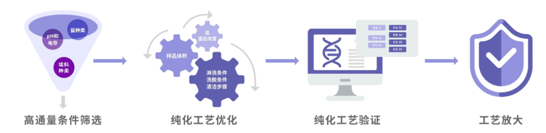 图3. 高通量蛋白纯化工艺筛选技术